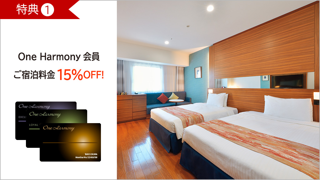 新登場!公式サイトからの宿泊予約限定特典!One Harmony会員はさらにお得に!