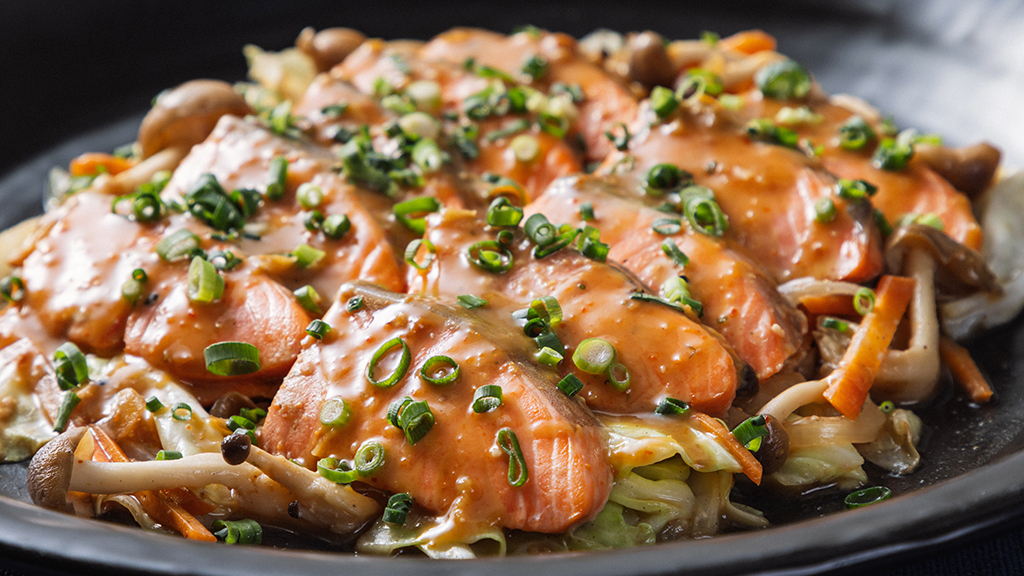 鮭と野菜を蒸し焼きにして味噌で味付けした北海道の郷土料理です。
